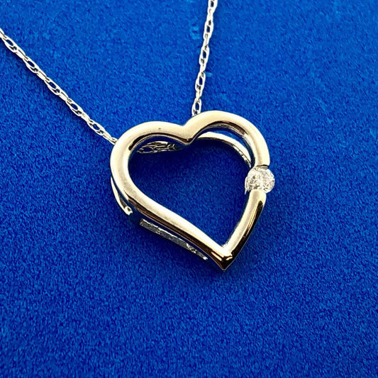 10K White Gold Diamond JCM Pendant 14K White Gold Chain Sweetheart Necklace