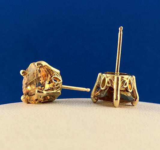 14K Yellow Gold Citrine November Anniversary Occasion Statement Stud Earrings