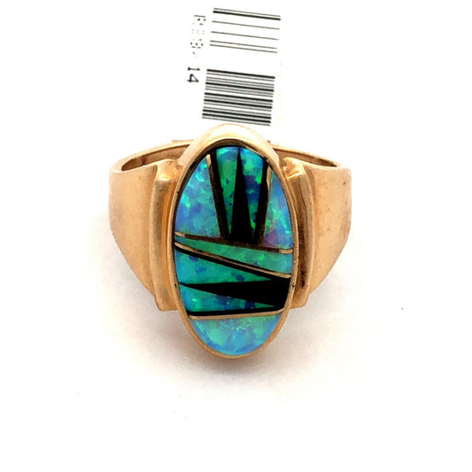 Calvin Begay Navajo 14K Yellow Gold Opal Onyx Storyteller Statement Ring