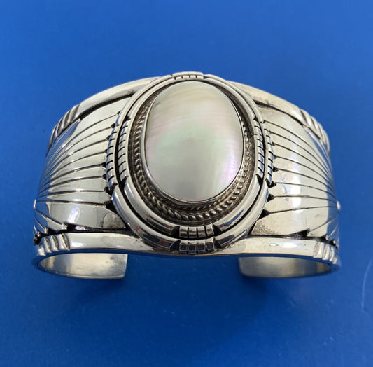 L James 925 Sterling Silver Native American Navajo Mother Of Pearl Cuff Bracelet