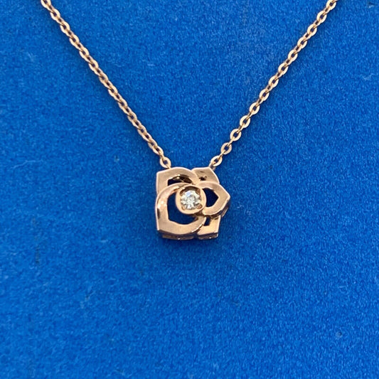 14K Rose Yellow Gold Diamond Solitaire Flower Pendant Necklace