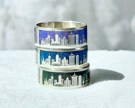 NOLA New Orleans Skyline Sterling Silver 925 Bello Opal Inlay Band Ring