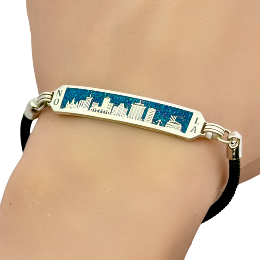 NOLA New Orleans Skyline Sterling Silver 925 Bello Opal Inlay Panel Bracelet