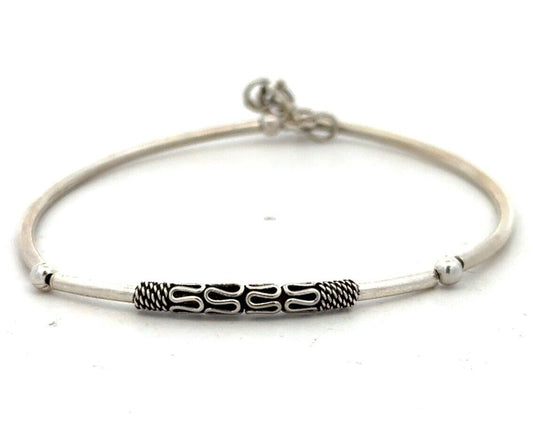 Estate 925 Sterling Silver Round Beaded Stackable Bangle Bracelet
