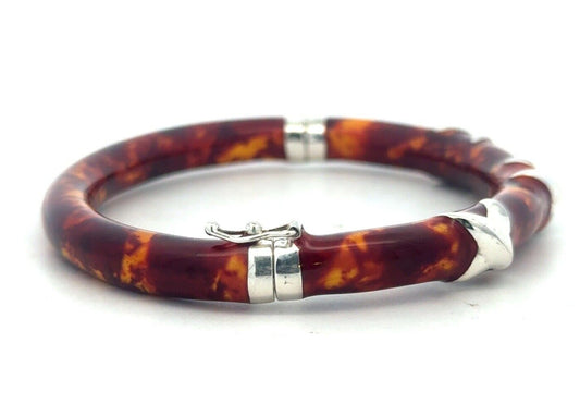 Milor Italy Sterling Silver Tortoise Shell Enamel Oval Hinged Bangle Bracelet