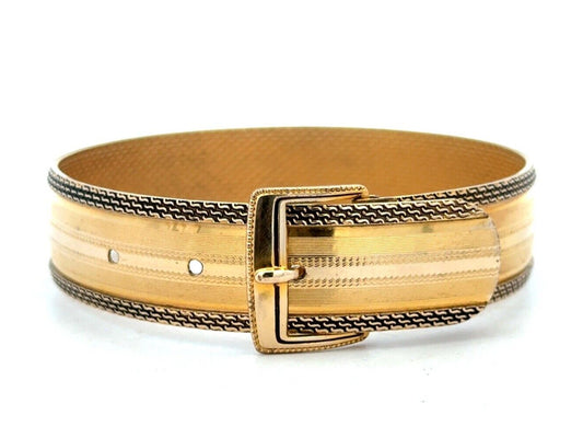 Vintage Hayward 10K Yellow Gold-Filled Belt Buckle Textured Bangle Bracelet