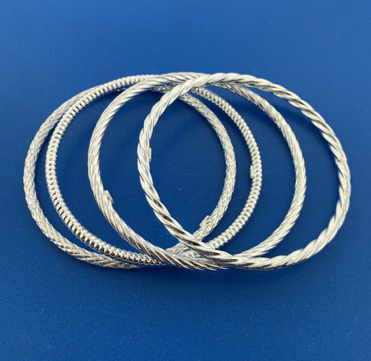 Designer Sterling Silver 925 Twisted Metal Cable 8" 4 Bangle Bracelet Set