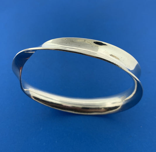 Taxco Artisan PAZ. 925 Sterling Silver Ribbed Wave Modernist Bangle Bracelet