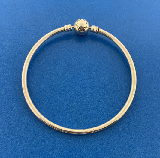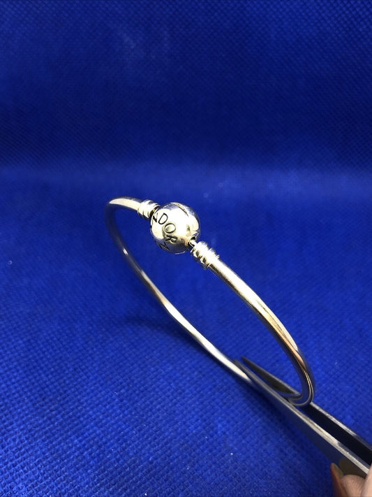 PANDORA 925 Sterling Silver Round Barrel Signature Clasp 590713 Bangle Bracelet