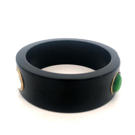 1980's Black Laquer Plastic Red White Green Jewelled Statement Bangle Bracelet