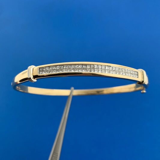 Designer 14K Yellow Gold Princess Channel Set Diamond Hinged Bangle Bracelet