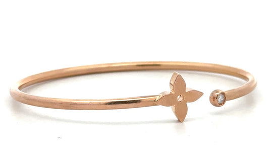 Louis Vuitton 18K Yellow Gold Diamond Flower Open Stackable Bangle Bracelet