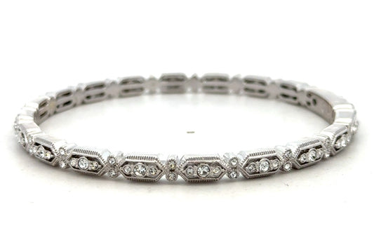 Designer NADRI Silver Toned Sparkling Cubic Zircona CZ Hinged Bangle Bracelet
