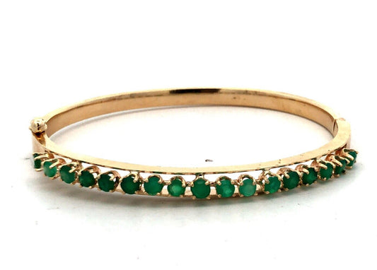 Estate 14K Yellow Gold Emerald May Anniversary Hinged Bangle Bracelet