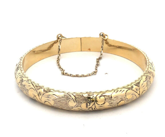 Vintage 12K Yellow Gold Filled Engraved Floral/Stripes Child's Bangle Bracelet