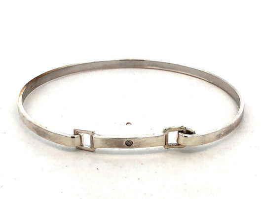 Estate 925 Sterling Silver Round Diamond Solitaire Hook Oval Bangle Bracelet
