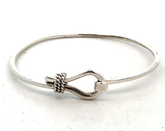 Estate 925 Sterling Silver Lasso Rope Hook Bangle Bracelet