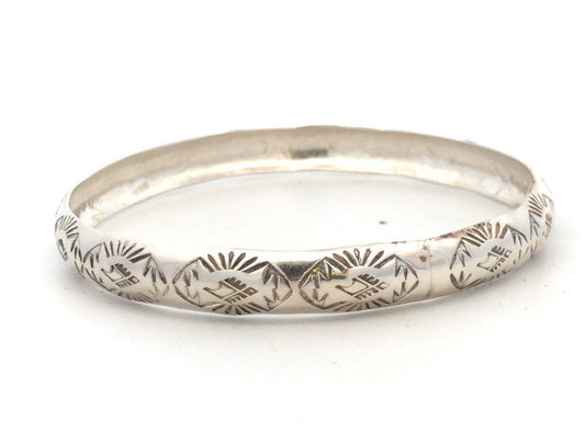 Native American Southwestern 925 Sterling Silver Concho Etched Bangle Bracelet