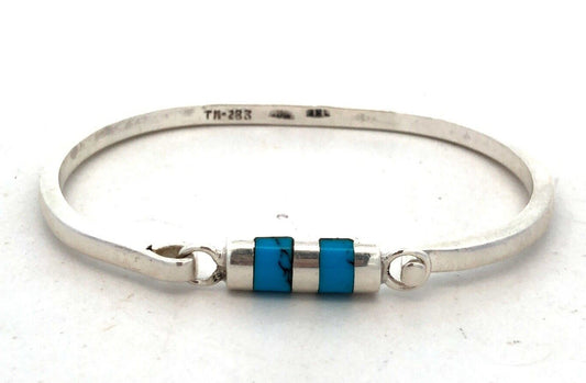 Vintage Taxco Mexico 925 Sterling Silver Turquoise Oval Bangle Bracelet