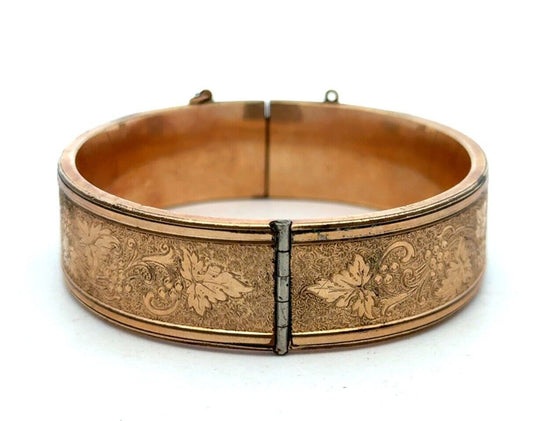 Vintage BBCO Gold Tone Grape Vine Textured Hinged Oval Bangle Bracelet