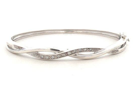 Designer ZEI 925 Sterling Silver Diamond Braided Infinity Hinged Bangle Bracelet