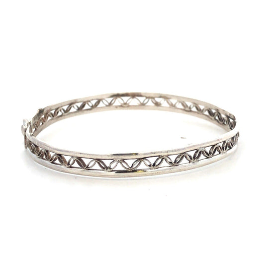 Vintage 925 Sterling Silver Open Work Leaf Scroll Bangle Bracelet