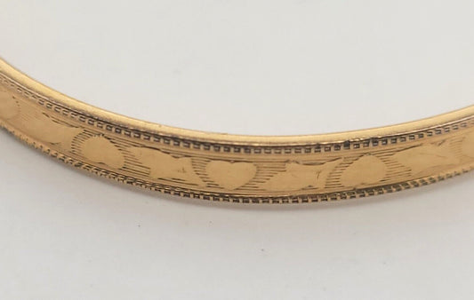 Vintage 12K Yellow Gold Filled Engraved Floral Heart Child Bangle Bracelet