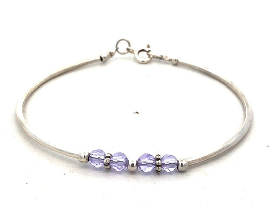 925 Sterling Silver Purple Crystal Beaded Round Bangle Bracelet