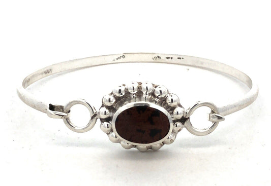 TAXCO Mexico 925 Sterling Silver Brecciated Jasper Cabochon Hook Bangle Bracelet