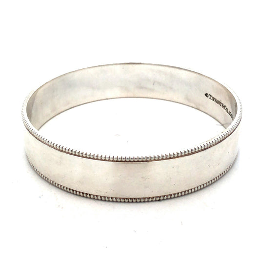 Tiffany & Co 925 Sterling Silver Ribbed Milgrain Polished Wide Bangle Bracelet