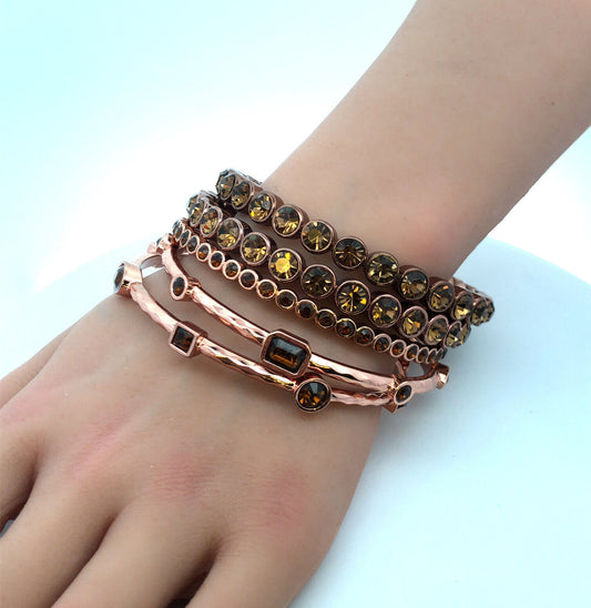Graziano Bronze Copper Tone Brown Cubic Zirconia Set Of Five Bangle Bracelets