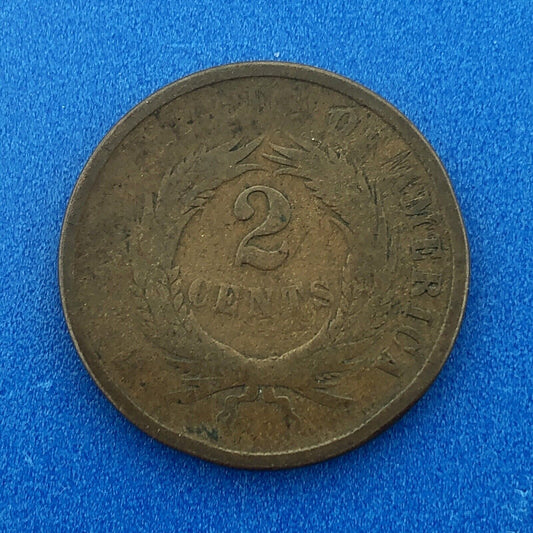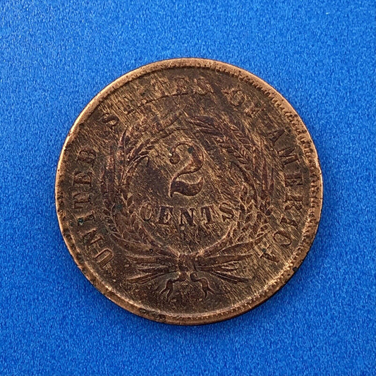 1865 P Bronze Two-Cent Piece Union Shield Short Lived Philadelphia Mint Coin