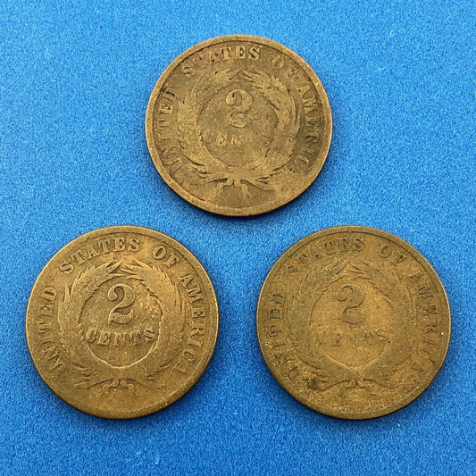 1866 P Bronze Two-Cent Piece Three Coin Mixed Date Union Shield Philadelphia Lot