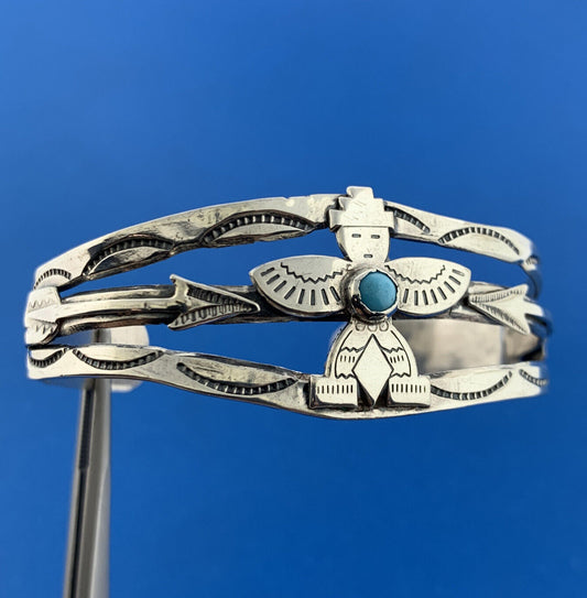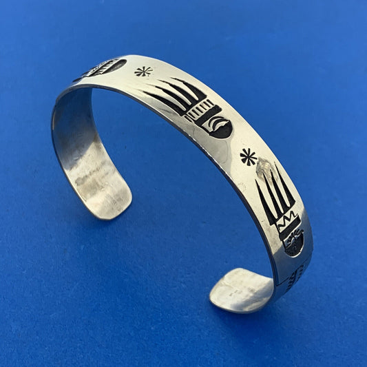 Native American T A Begay Navajo Silver Toned Storyteller Cuff Bracelet