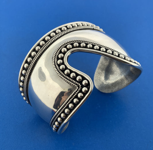 BA Suarti 925 Sterling Silver Rope Beaded Modernist Statement Cuff Bracelet