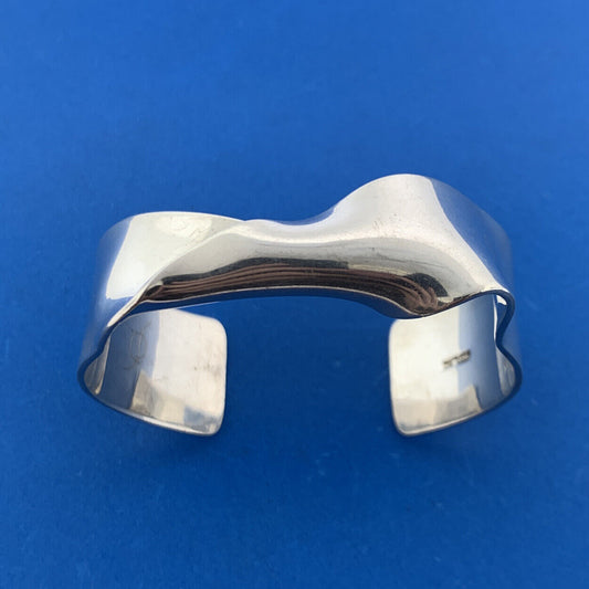 1980's Taxco Mexico Artist 950 Fine Silver Modernist Designer Wave Cuff Bracelet