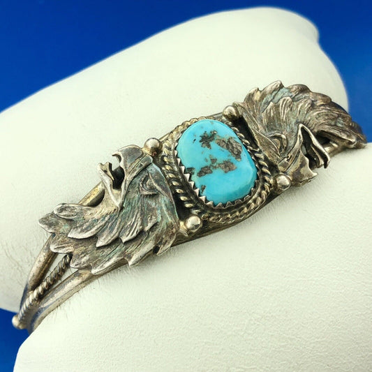 Stunning Sterling Silver Cabochon Turquoise Native American Eagle Cuff Bracelet