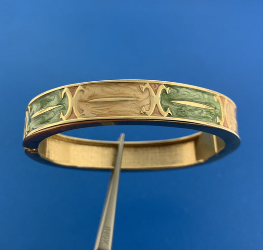 Retro 1980's Gold Tone Pale Peach Green Enamel Hinged Cuff 2 Bracelet Set