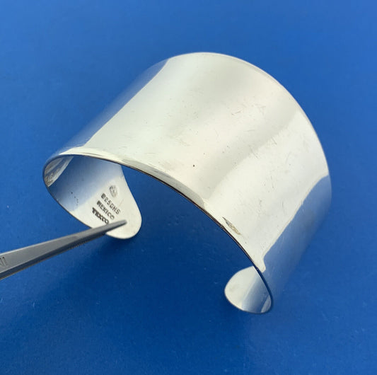 Vintage Taxco 925 Sterling Silver Wide Tapered Statement Open Cuff Bracelet
