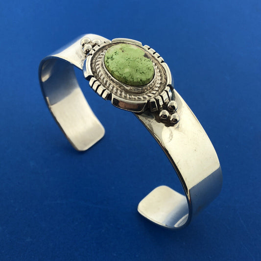 Native American Signed 925 Sterling Silver Rare Green Turquoise Cuff Bracelet