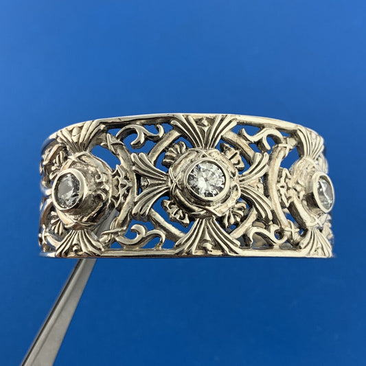 Artisan Sterling Silver Cubic Zirconia Open Scroll Work Statement Cuff Bracelet