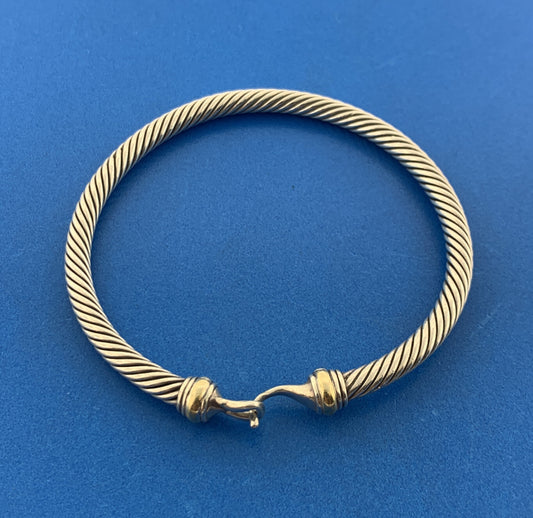 David Yurman DY Sterling Silver 925 18K Classic Cable Buckle 4 MM Cuff Bracelet