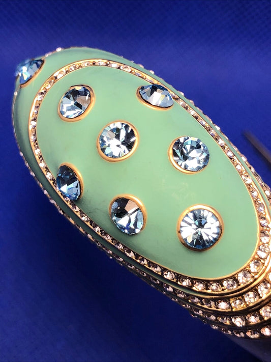 Designer Gold-Tone Teal Enamel Rhinestone Statement Hinged Cuff Bracelet