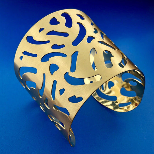Modernist Gold Tone Brushed Finish Animal Print Cutout Statement Cuff Bracelet