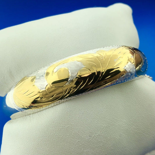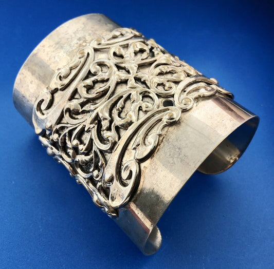 Designer CI Sterling Silver 925 Gold Two Tone Floral Scroll Hinged Cuff Bracelet