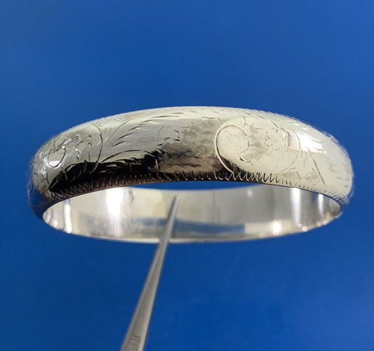 Vintage 925 Sterling Silver Vine Floral Etched Scroll Hinged Cuff Bracelet