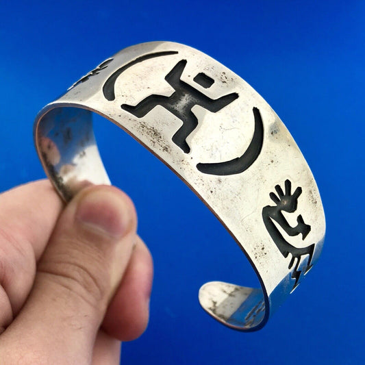 Taxco Mexico 925 Sterling Silver Kokopelli Fertility Storyteller Cuff Bracelet