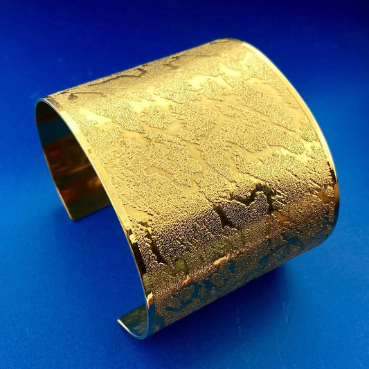 Francesca Visconti Gold Tone Animal Print Textured Runway Couture Cuff Bracelet