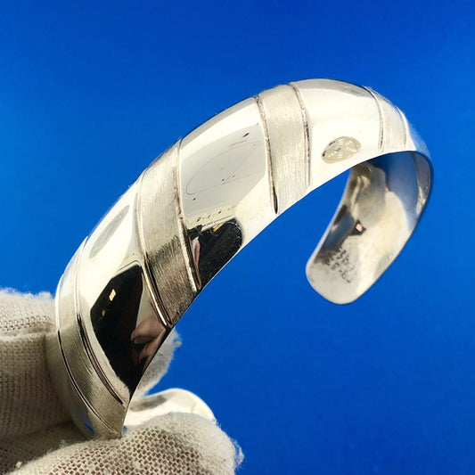 Vintage Taxco Mexico Sterling Silver Polished Florentine Cuff Bracelet