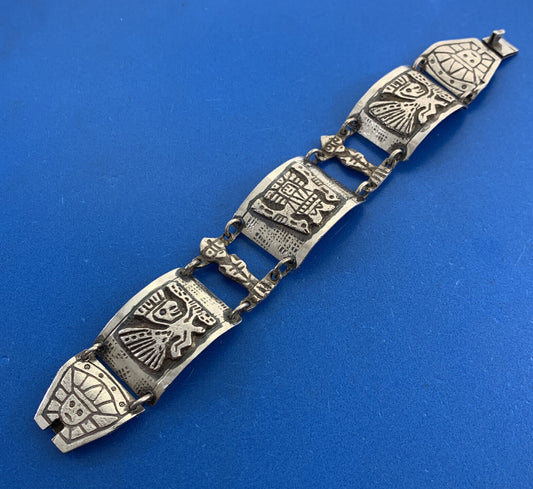 Designer Peru 925 Sterling Silver Inca Gods Panel Cuff Bracelet